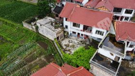 庭院总占地面积550平米左右,分为三栋建筑,主体建筑二层楼建筑面积约300平方,室内简单装修干燥无渗漏,附属建筑分别是占地30平方米二层红砖房和石砌的牛圈,院子总体300平米左右,栽有葡萄树,二层可直接看到湖景,视线良好。院外百米处有自家土地可协商使用。